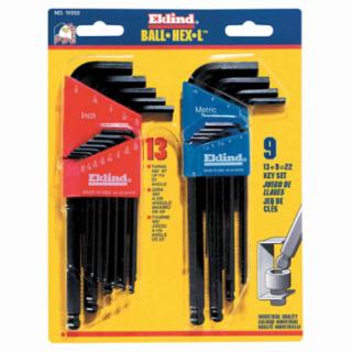 Eklind Tool 13222 22 Piece Black Oxide Long Series Ball-Hex-L Key Inch/Metric Size Set (1 Set)