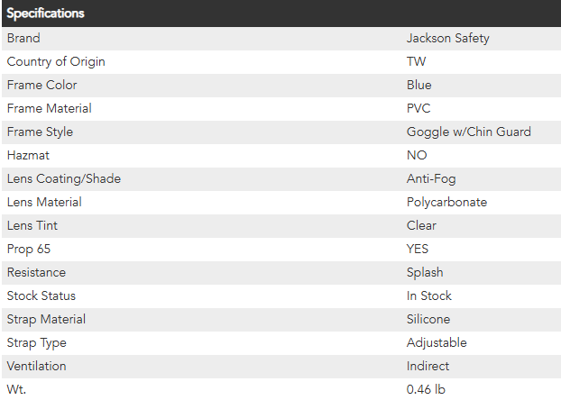 Jackson Safety GPL500 Series Premium Goggles with Detachable Face Shield Product Details: Ultra-soft body design conforms to your face for superior comfort, fit and safety Made with indirect vents for added protection from dust and chemical splash Optically correct lens delivers and exceptional panoramic view Extra-wide flame retardant strap is swivel mounted to goggle for easy positioning Special anti-fog coating guarantees a safe and fog-free working environment. |
