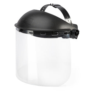 Add a face shield to your personal protection arsenal for grinding, polishing, deburring and other operations. This shield features a clear impact resistant shield that wraps around he entire face.