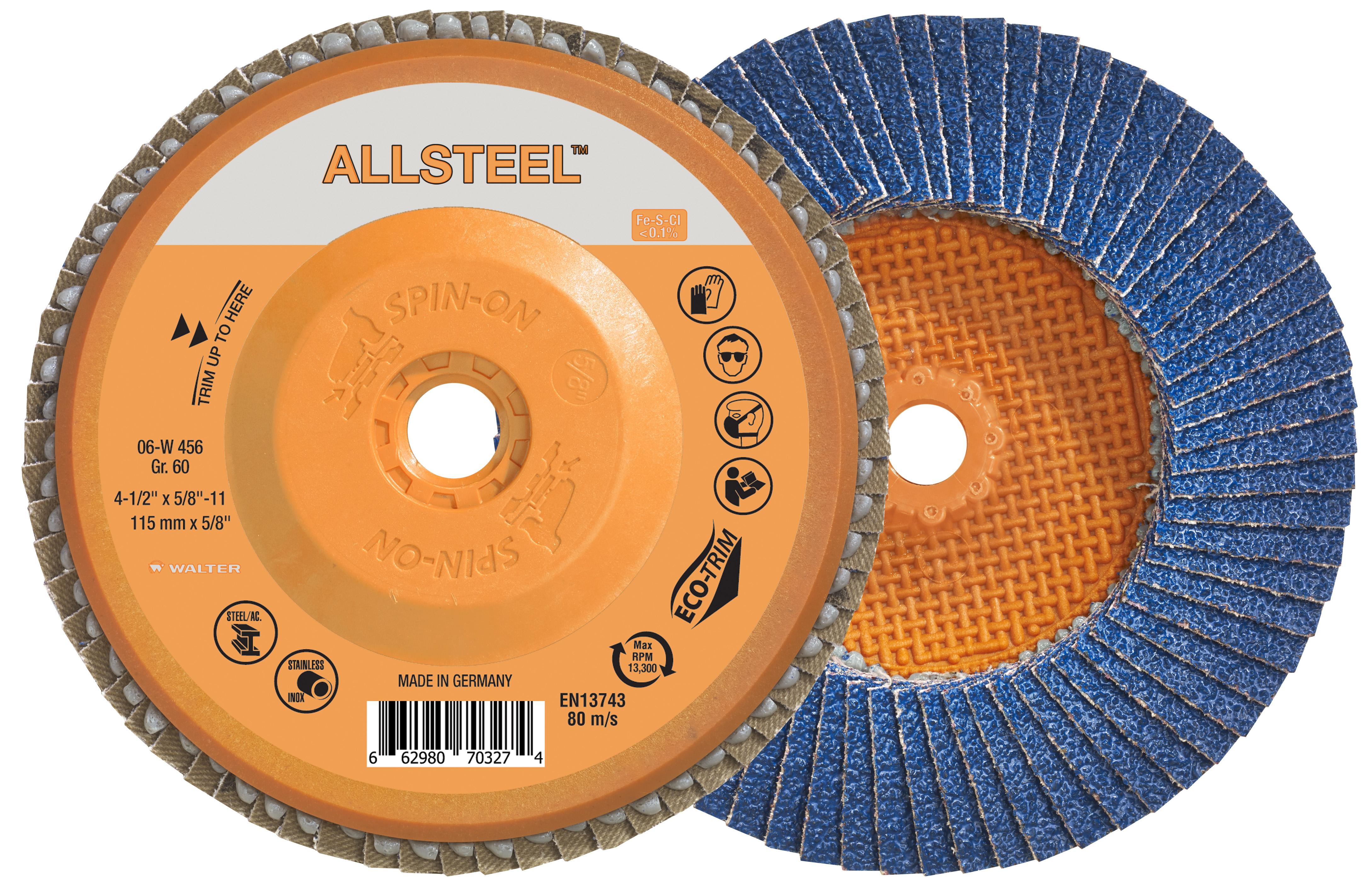 Walter 06W456 4.5" 60 Grit Spin-On ALLSTEEL™ Flap Disc