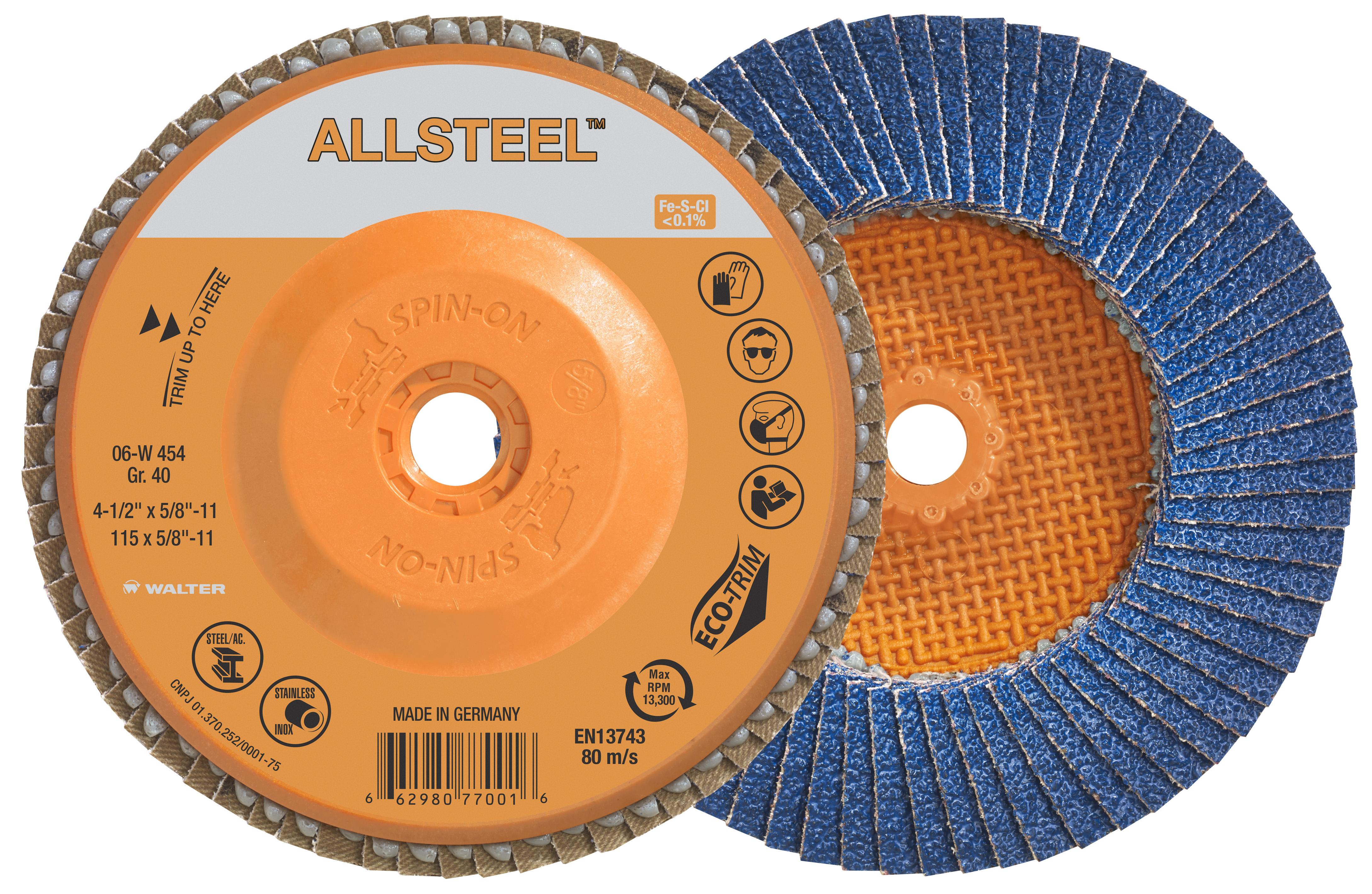 Walter 06W454 4.5" 40 Grit Spin-On ALLSTEEL™ Flap Disc