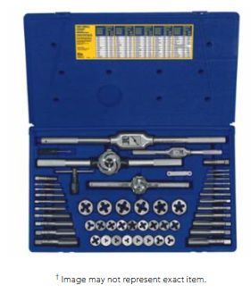 53-pc set in plastic case includes the following items: Metric Plug Tap and 1 in Hexagon Dies in sizes: 3mm - 0.50