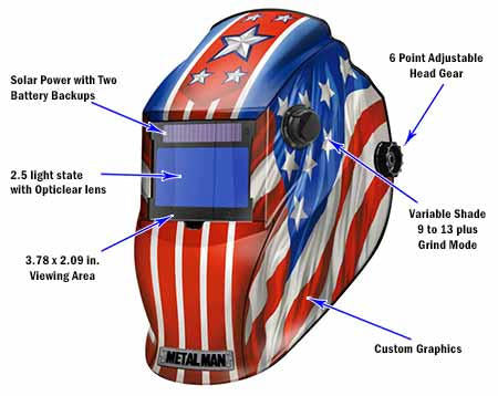 Metal Man APA8735SGC Patriotic BIG Window Variable Shade Auto Darkening Welding Helmet