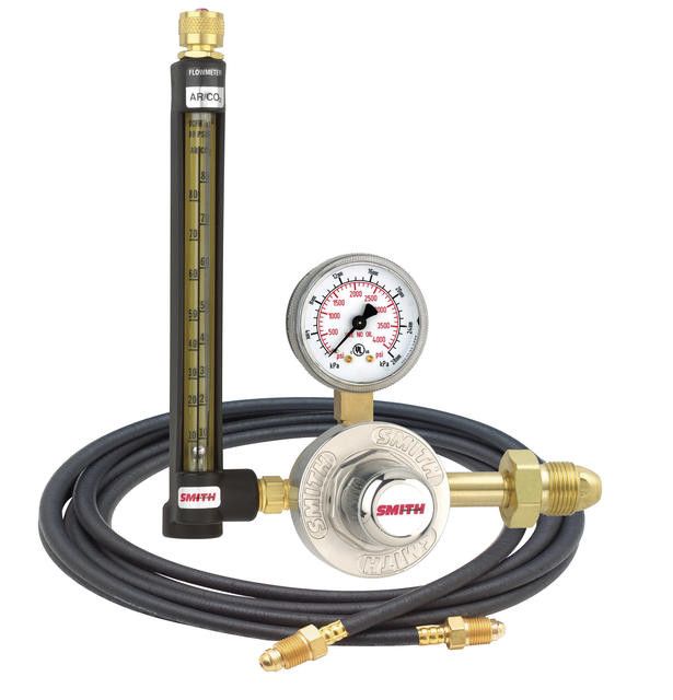 Smith-Miller Flowmeter Regulator works great with argon, Co2, and helium. This Smith regulator comes with a true blue 3 year warranty. This is a medium duty regulator that is a part of Smith's 30 series line of regulators.