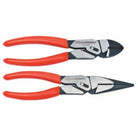 Long nose cutting plier has machined, cross checked jaw pattern for gripping and twisting in any direction.