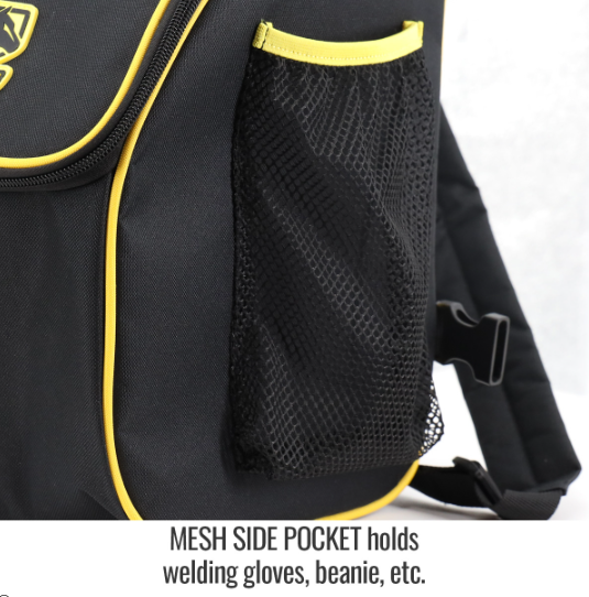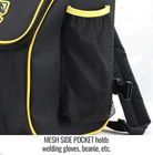 - Mesh outside pocket holds welding gloves, beanie, etc.