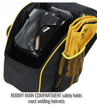 - Main compartment securely holds & protects most welding helmets