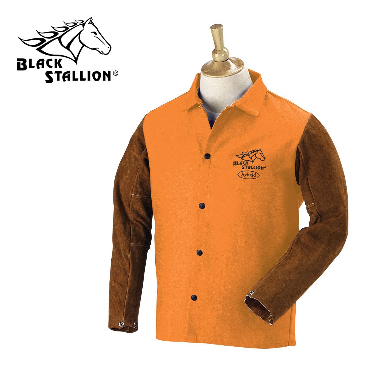 With a Black Stallion® Hybrid Welding Jacket, you get the best of both worlds; rugged leather sleeves shield arms from sparks and spatter, while breathable cotton protects the torso.