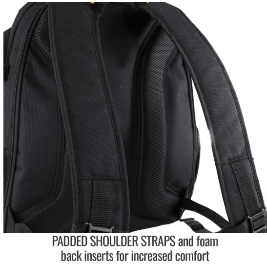 • 8mm foam padded shoulder straps & sternum strap with molded buckle