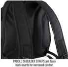 • Large zippered compartment with laptop sleeve & organizer pockets (holds up to 15” laptop)