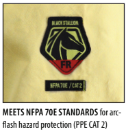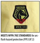 - ASTM F1506; NFPA 70E; ATPV 9 cal/cm2 (PPE CAT 2)