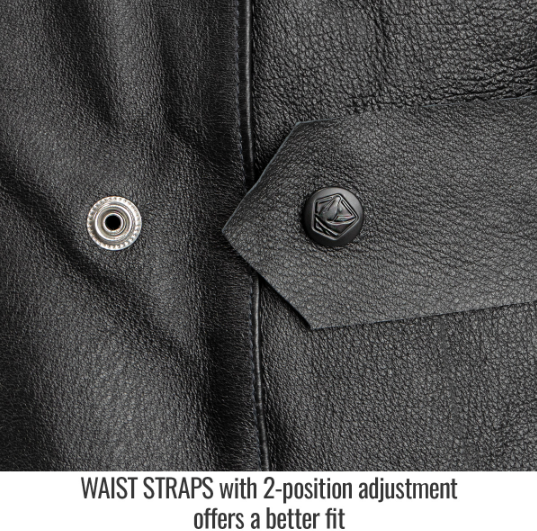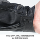 - Wrist snaps with 2-position adjustment and rivet reinforcements