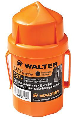 Walter 01E618 29-Piece Round Shank Jobber's Length SST+ Drill Bit Set, Orange