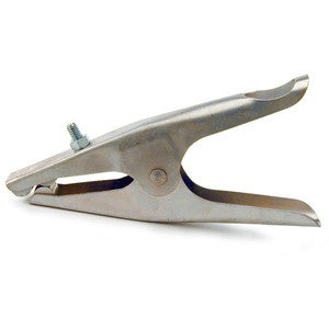 Easy operation. Just squeeze, slip jaws over the work and let go. No bolts or nuts to tighten. Jaws open full 2-1/2" (63 mm). Welding cable lug bolts directly to the work clamp. Heavy spring tightly clamps jaws to work or table. Rated 300 amps at 60% duty cycle.