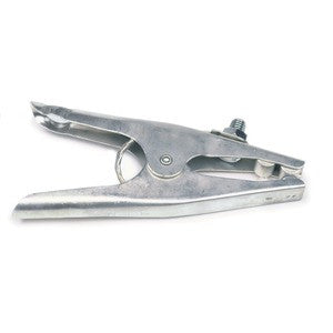Easy operation. Just squeeze, slip jaws over the work and let go. No bolts or nuts to tighten. Jaws open full 2-1/2" (63 mm). Welding cable lug bolts directly to the work clamp. Heavy spring tightly clamps jaws to work or table. Rated 500 amps at 60% duty cycle.