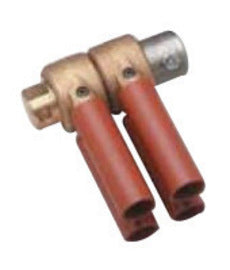 Tweco Roto-Ground is a highly efficient device for grounding weldments while being rotated on turning rolls or positioners. The 2" shaft shoulders up to a steel nut which the user welds to his rotating work or fixture. Tweco Roto-Grounds have no brushes, springs or mercury. A simple tension adjusting bolt provides maximum efficiency.