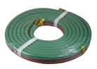 This Weldmark® Grade R twin line welding hose is 3/16" x 12.5 feet in length. Twin line hoses include two hoses - one in green and one in red. The green hose is intended for transporting Oxygen to welding equipment, while the red hose is intended for Acetylene. Made of rubber, this welding hose has two brass female AA fittings on either end. It can reach a max operating temperature of 180 degrees Fahrenheit (82 degrees Celsius) and an operating pressure of 200 psi.
