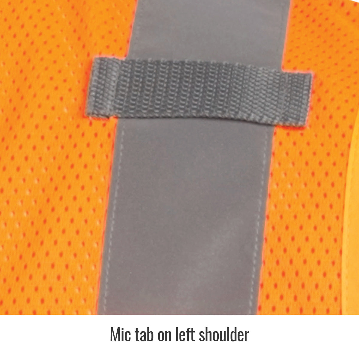 - Mic tab on left shoulder for hand microphone attachment