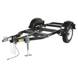 Includes pivoting jack stand, safety chains, and 13" wheels. Overall width 60" Stiff. 120" welded rectangular steel tube frame construction is phosphate etched and powder coat painted for superior rust and corrosion resistance.