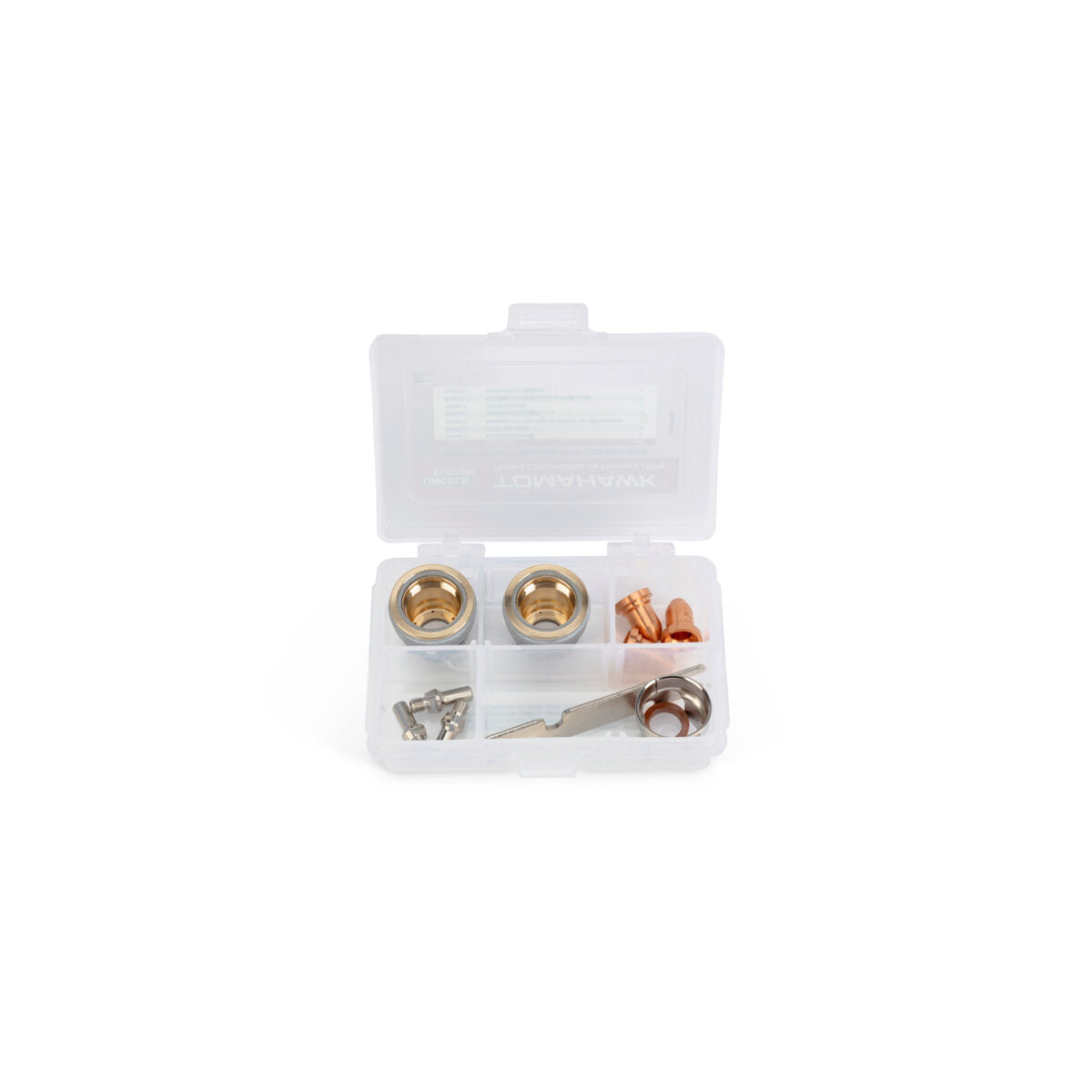 (3) KP2842-1 Electrodes, (3) KP2842-6 Nozzles 30A, (1) KP2842-3 Retaining Cap (Internal Air Only), (1) KP2842-4 Swirl Ring, (1) KP2842-5 Drag Spacer, (1) 9SS28173-5 Electrode Key (Wrench), (1) KP2842-7 Retaining Cap (External Air Only), (1) Durable Plastic Storage Box with Latch