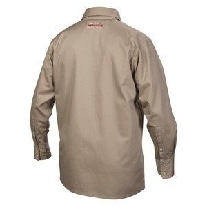 - Add breathable light weight protection with a 9 oz. 100% flame retardant material khaki welding shirt