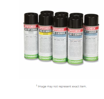 Convenient collection of Magnaflux dye penetrant testing consumable products in easy-to-use aerosol form for Type 2 penetrant non-destructive testing