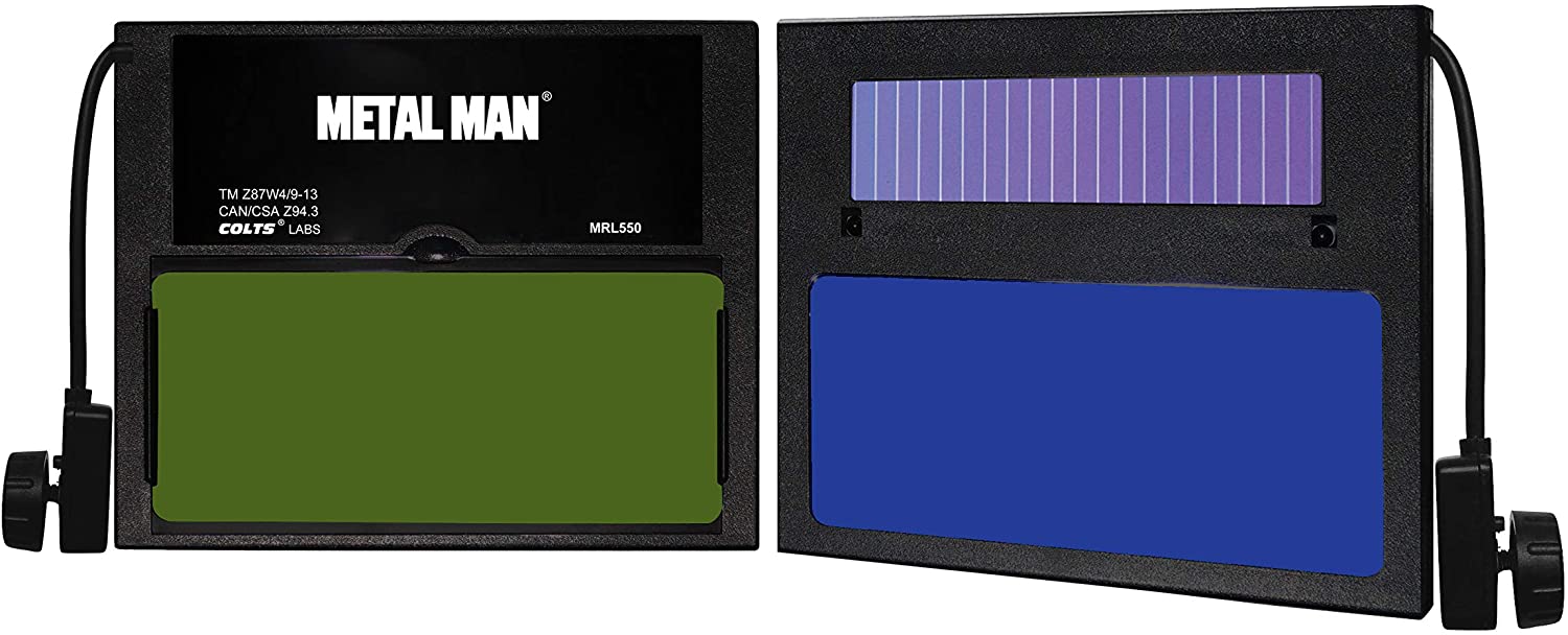 The Metal Man "Real Flame" 9-13 Variable Shade Auto-Darkening welding helmet plus Grind Mode features a light weight/comfortable design with the graphics to show your style. Features include auto on/off, external 9-13 shade control with grind setting.