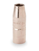 Miller 169724 includes (1) non-threaded replacement gun nozzle with 1/2" diameter orifice. Contact tip recess is 1/8". Nozzle focus the shielding gas as close to the welding arc as possible to minimize spatter. For use with M-25 and M-40 MIG gun.