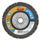 Cut at a fast rate while enjoying improved grain retention and fray resistance when you attach the Blaze R980P coarse grit arbor thread fiberglass heavy duty flat flap disc to your right angle grinder. Its high-density, jumbo Y-weight flaps act like finer grits, and they absorb vibration to increase operator comfort. When blending, beveling, deburring and removing stock from chrome, cobalt, inconel, stainless steel, titanium and other hard-to grind materials, this flap disc's latest-generation ceramic alumina abrasive lasts 50 to 200 percent longer than other flap discs.