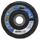Operate your right angle grinder efficiently with the lightweight and durable Blue Fire R884P coarse grit center mount plastic heavy duty flat flap disc. The high-performance zirconia alumina plus abrasive extends the life of the disc up to 30 percent and provides a consistent cut during coarse grit blending, deburring and stock removal. The jumbo semi-open flaps reduce loading when used on soft metals, and the fiberglass/resin backing plates absorb vibrations, improving operator comfort.