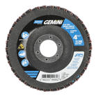 Blend and smooth your metal projects on flat surfaces at 0 to 15-degree angles using the Gemini R766 coarse grit center mount plastic flat flap disc. The Type 27 flat flap disc has an alternating zirconia alumina and aluminum oxide grain to give you maximum performance at a cost-effective price. The flexible plastic backing sets industry standards for trimmability and conforms to the metal surface during use. Great to blend, deburr and remove stock from soft metals, 300 and 400 series stainless steels, cast iron, titanium and super alloys.