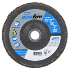 Operate your right angle grinder efficiently with the lightweight and durable Blue Fire R884P coarse grit center mount plastic heavy duty flat flap disc. The high-performance zirconia alumina plus abrasive extends the life of the disc up to 30 percent and provides a consistent cut during coarse grit blending, deburring and stock removal. The jumbo semi-open flaps reduce loading when used on soft metals, and the fiberglass/resin backing plates absorb vibrations, improving operator comfort.