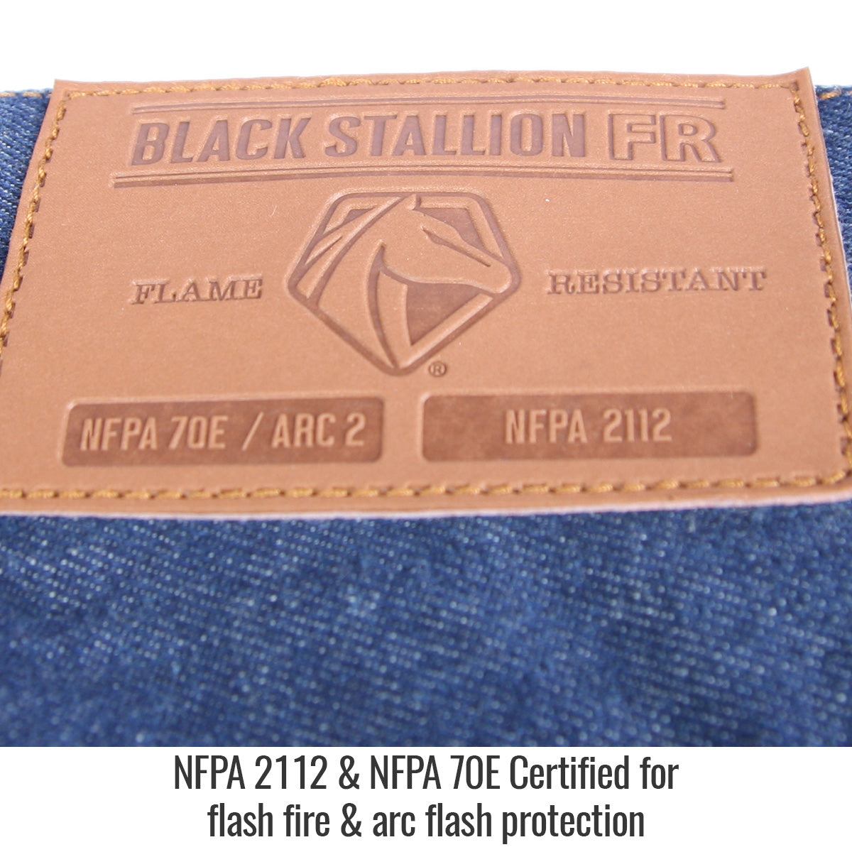 - Lighter weight 10.5 oz. 99% cotton/1% spandex flame-resistant stretch denim