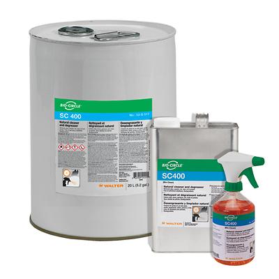High strength citrus cleaner/degreaser formulated with citrus peel extracts, SC 400@ is a heavy duty, powerful, fast-acting alternative to petroleum-based solvent cleaners. Easily removes adhesives, glues, sealants, rubber residues, tar, paint, ink, pen marks, grease, lubricants and oils.