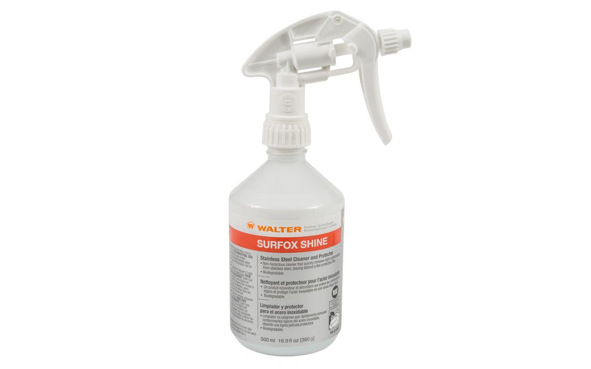 Walter SURFOX™ Shine Cleaner is non hazardous and removes light contaminants from stainless steel and creates a protective layer.