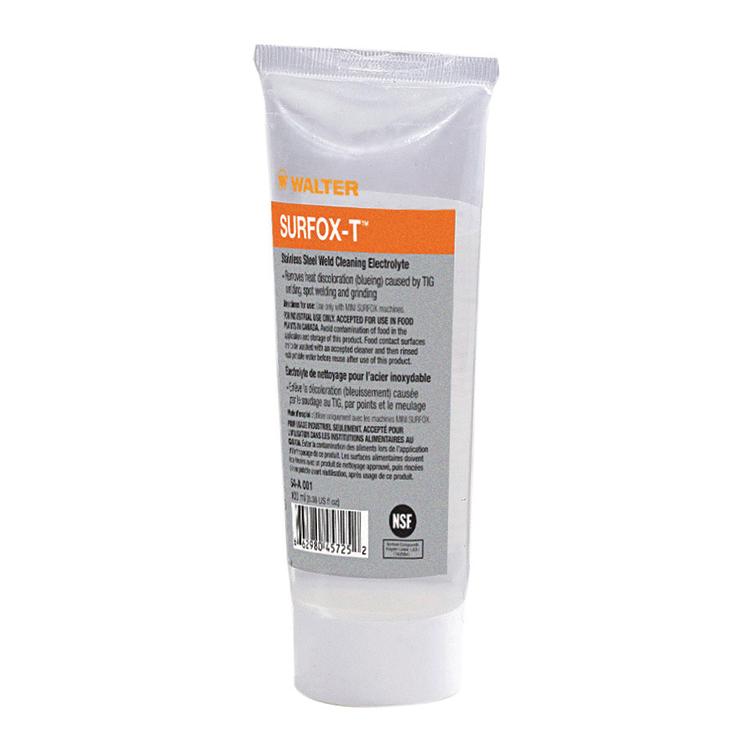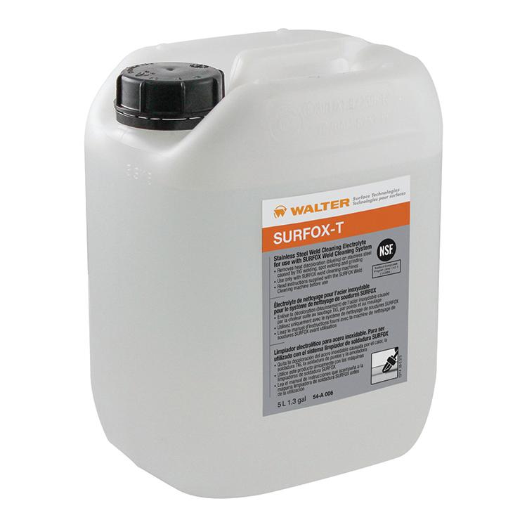 The Walter SURFOX-T™ Weld Cleaning Solution is a heavy duty electrolyte solution composed of phosphoric acid and other additives that helps it clean up some of the most demanding dirty weld applications. The SURFOX-T™ is great for use on TIG, SPOT, and PULSE MIG welds.